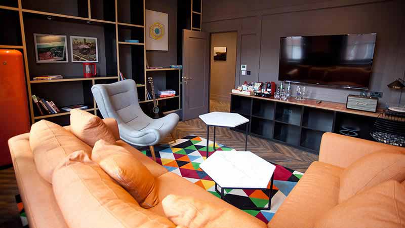 Dans le lobby comme dans les chambres de l’hôtel The Dean, l’art irlandais est de mise : on retrouve des tableaux d’artistes locaux et du mobilier de designers phares. Et toujours dans le chic et sobre, sans ostentation aucune, les fauteuils orangés et le tapis multicolore graphique tranchent sérieusement avec les têtes de lit noires et les murs bleu foncé. Le service est affable et courtois. Le personnel très souriant, accourant à vos moindres désirs et prêtant une attention particulière à vos besoins, sans jamais vraiment empiéter sur votre espace privé. Seul bémol dans cet hôtel Dublin, pas de spa ni de salle de sport, mais la raison est toute simple : The Dean est un établissement entièrement conçu comme une maison de famille, où les équipements traditionnels d’un hôtel ne sont pas forcément de mise.