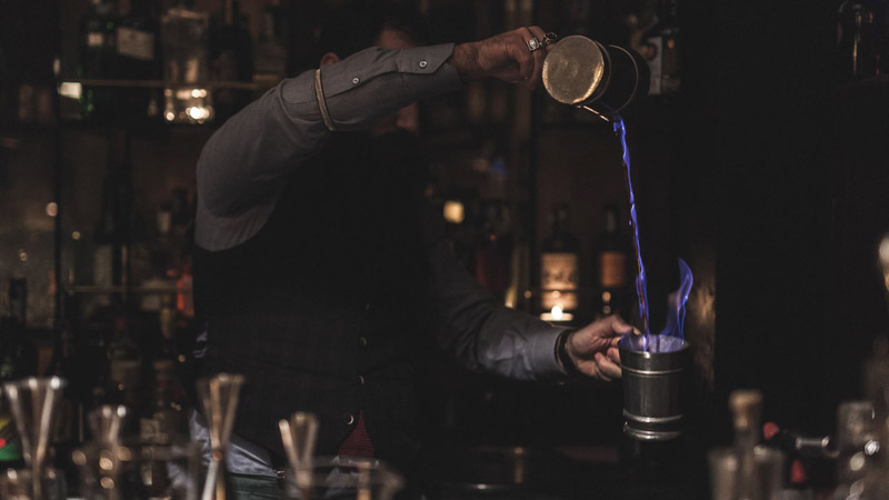 Derrière le bar, des mixologues aux chemises amidonnées, jarretières à manches et longues barbes, agitent leur shakers pour vous préparer des cocktails qui changent au fil des saisons, et de leurs envies. A essayer absolument : Le cocktail Sushi, à la vodka infusée de saumon et à la liqueur de litchi, et le Sherbert, à base de Pimm’s, sirop de gingembre et citron.