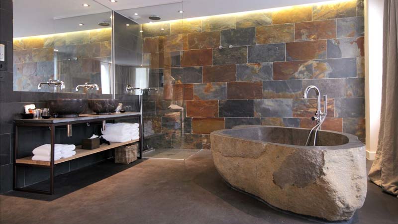Dans les chambres, on retrouve ce même savant mélange de matières et de couleurs, qui nous plonge dans une ambiance contemporaine et hors du temps, comme à la campagne. Ce qu’on aime le plus ? Les voilages en lin qui entourent chaque lit, comme un baldaquin, nous enveloppant au plus haut point dans un cocon de sérénité et de douceur. Que ce soit dans les chambres Intuition ou Emotion, on retrouve un univers aux tons chauds et aux matériaux bruts. Les lits sont dotés de matelas Coco-Mat en fibre 100 % naturelles de coco et de draps en lin, pour des nuits plus agréables et plus fraîches. Les chambres et les suites du Hidden Hotel offrent aux voyageurs, quiétude et confort, tout en étant au cœur de la ville, à quelques pas seulement de l’Arc de Triomphe. La grande particularité des chambres sont ses salles de bain, toutes ouvertes sur la pièce et qui allient ardoise et vasques taillées dans la pierre et le marbre. Notre coup de cœur est immédiat lorsque l’on pénètre dans l’une des suites Exception qui intègre une magnifique baignoire creusée dans du marbre.