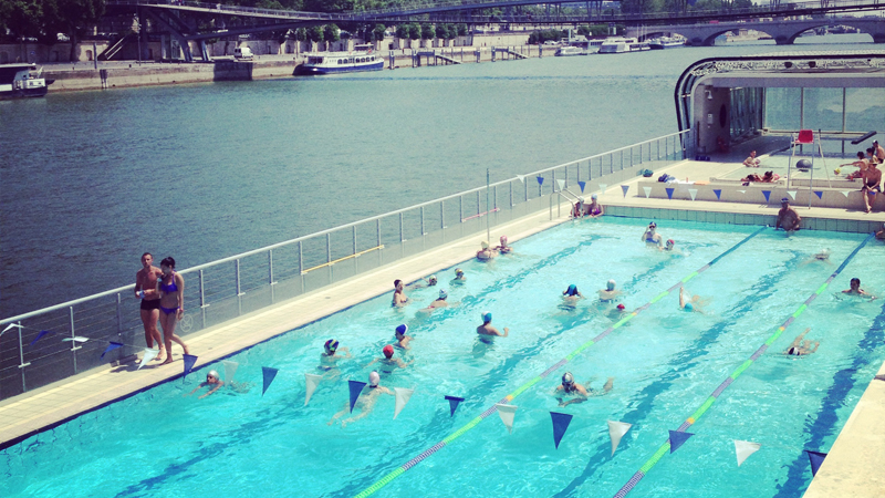 J’ai deux amours…Paris et la piscine ? Joséphine Baker aurait pu la chanter ainsi, étant donné l’attribution de son nom à une piscine située sur une péniche amarrée en plein cœur de Paris. Son bassin de 25 mètres traité à l’ozone (et non au chlore !) et aux larges baies vitrées permet de nager en admirant la Seine. La piscine dispose d’un plafond en verre ouvrant l’été et d’un immense solarium sur le toit, avec des transats pour les amateurs de bronzette. L’une des meilleures piscines à Paris.