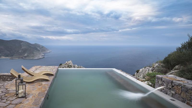 Mais que serait l’hôtel Tainaron sans sa piscine à débordement ? A l’ombre des oliviers, le petit bassin profond semble ne faire qu’un avec la Méditerranée. Installez-vous sur les transats et profitez de la vue dans cet endroit idyllique, qui ne ressemble à aucun autre dans le monde.